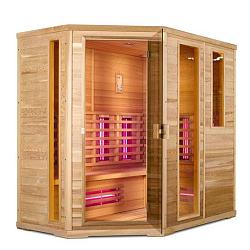 Угловая трехместная сауна из качественного канадского кедра идеально впишется в любой интерьер. Данную модель инфракрасной сауны покупают как в спа-центры, так и в квартиру или дом.