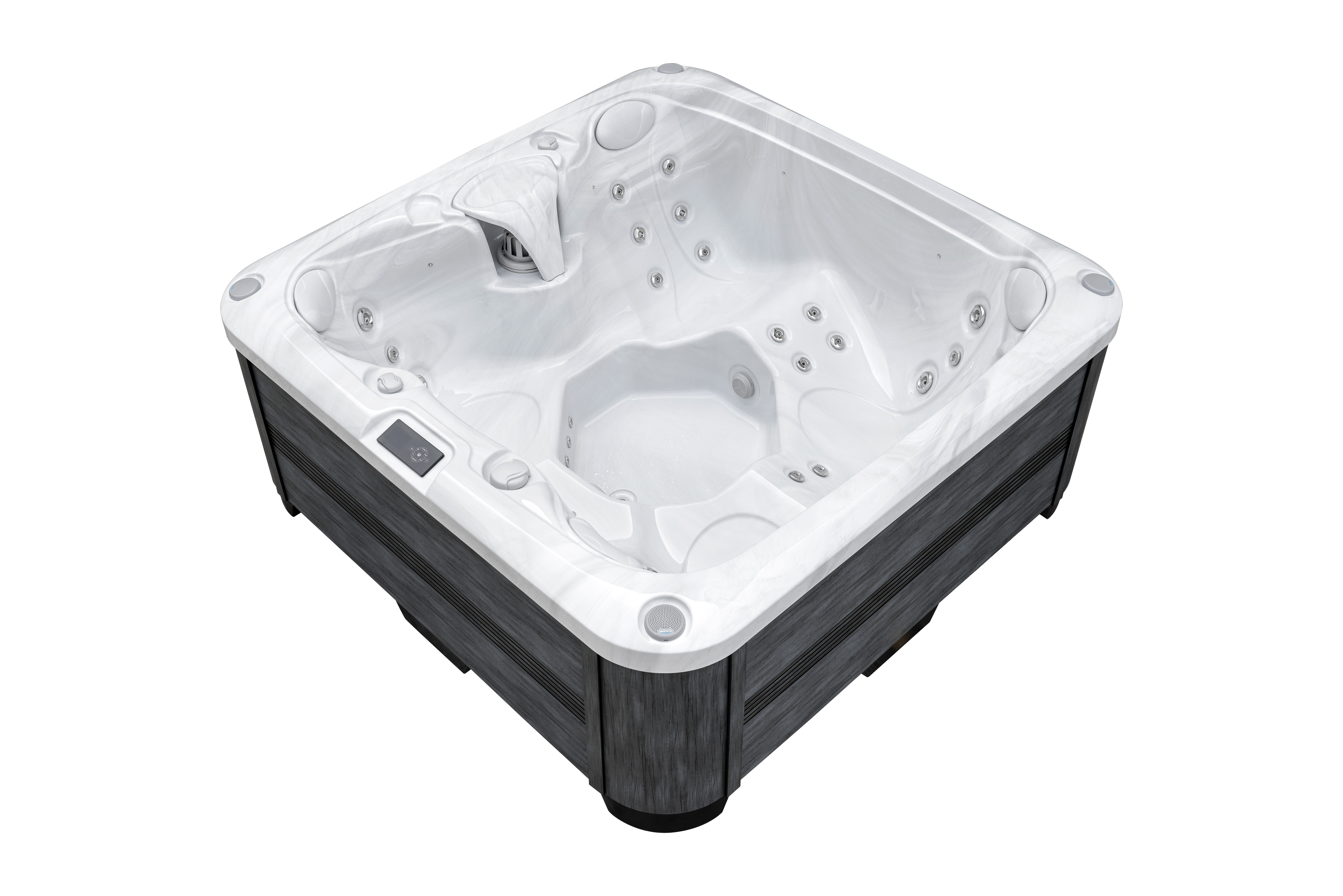 Lodur оснащен 37 воздушно-водяными форсунками, которые обеспечивают targeted массаж ключевых зон и глубокое расслабление мышц. Продуманная эргономика с четырьмя подголовниками создает комфортные условия для отдыха компании до пяти человек.